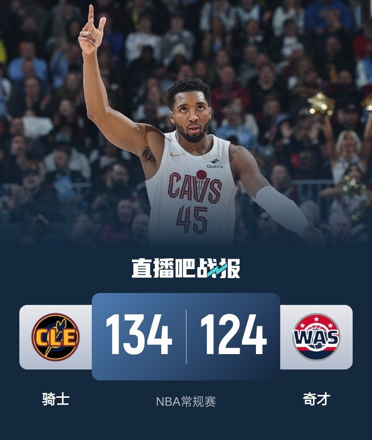 上半场,库利巴利先发制人首节独得12分,骑士内外开花强势回应,次节双方继续对攻,普尔和米切尔展开飙分大战,奇才稳扎稳打,半场以67-64领先骑士。下半场,双方依旧打得难解难分,比分始终紧咬,末节骑士持续发力将分差拉开到两位数,奇才苦苦追赶无果。最终,骑士击败奇才,客场过关。