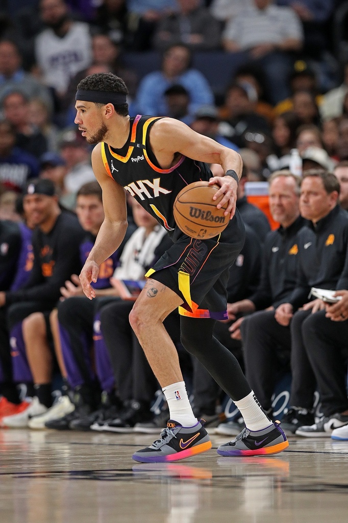 理查兹、比尔、普拉姆利、阿伦四位主要轮换球员缺阵,太阳首发摆杜兰特+布克+邓恩+伊戈达罗+吉莱斯皮,虽然缺兵少将,但围绕杜兰特和布克高位挡拆打阿伦依然成功抢到了开局的先手。