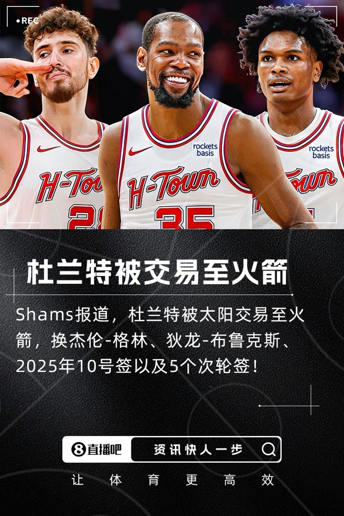 超重磅杜兰特被交易至火箭!换杰伦-格林+狄龙+10号签+5次轮
