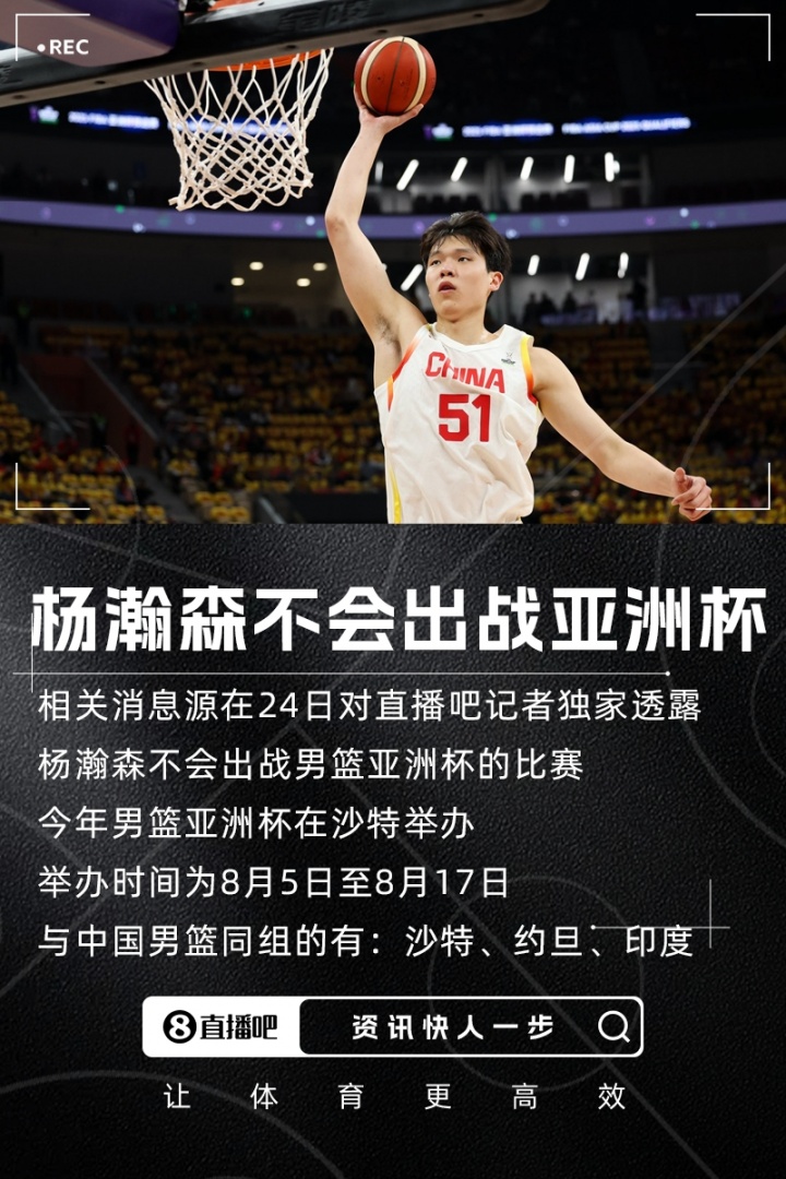 7月25日讯 根据此前的报道,杨瀚森不会出战男篮亚洲杯的比赛。篮球评论员苏群发文谈到了中国篮球,部分原文如下:亚洲杯如果打不好,对篮...
