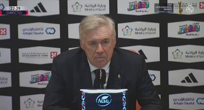 1月10日讯 皇马3-0击败马洛卡,晋级西超杯决赛。皇马主帅安切洛蒂出席新闻发布会。怎样预计这场比赛的?安切洛蒂:“我预计会很艰难。我们...