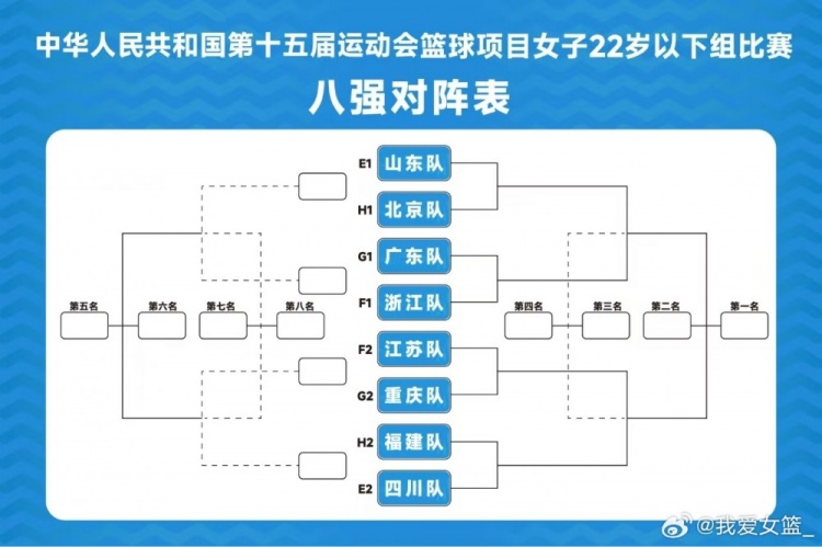 U22全运女篮1/4决赛对阵:山东vs北京 江苏vs重庆 四川vs福建
