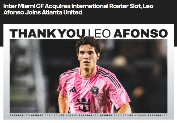 7月28日讯 迈阿密国际官方宣布,24岁前锋莱昂纳多-阿方索转会加盟亚特兰大联。作为交换,迈阿密国际获得了一个国际球员名额,以及22.5万美...