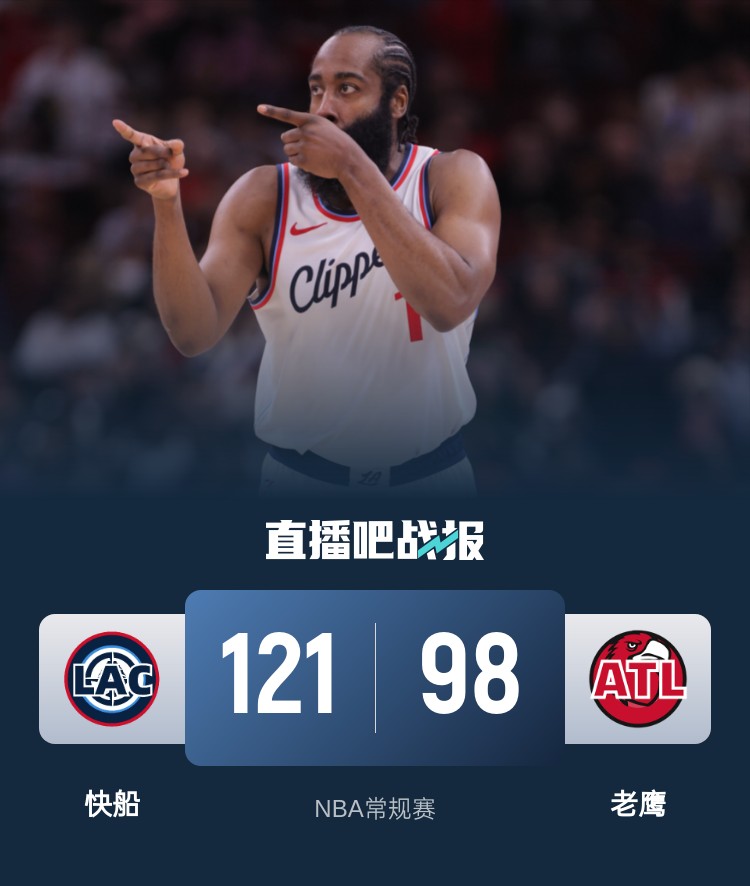 开场后快船主要依靠莱昂纳德和哈登拿分,老鹰则是在特雷-杨的带领下多点开花,老鹰轮换阵容打出7-0攻势取得领先。第二节快船率先打出攻势追上比分,老鹰外线多次命中三分稳住阵脚,两队陷入拉锯战,上半场老鹰多点开花再度建立领先。易边再战,快船上来一波11-0直接完成反超,老鹰进攻表现不佳,快船单节打出35-8直接拉开比分。最后一节虽然老鹰努力追分,但莱昂纳德带领快船掌控局面,没有给老鹰追上比分的机会,最终快船121-98终结老鹰4连胜。