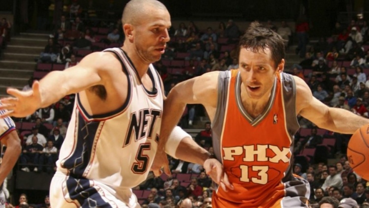 随后便进入了新世纪。先声夺人的是基德,他所率领的篮网连续2年统治了东部,但在湖人和马刺面前也只能败下阵来。基德和佩顿一样,老去后在球队抱大腿,“抱得”一个总冠军。然后是纳什,他所率领的太阳掀起小球旋风,又接连在西决倒在马刺、独行侠和湖人脚下。纳什也想抱大腿,生涯末年加盟湖人,却又遇到科比的跟腱伤,功败垂成。