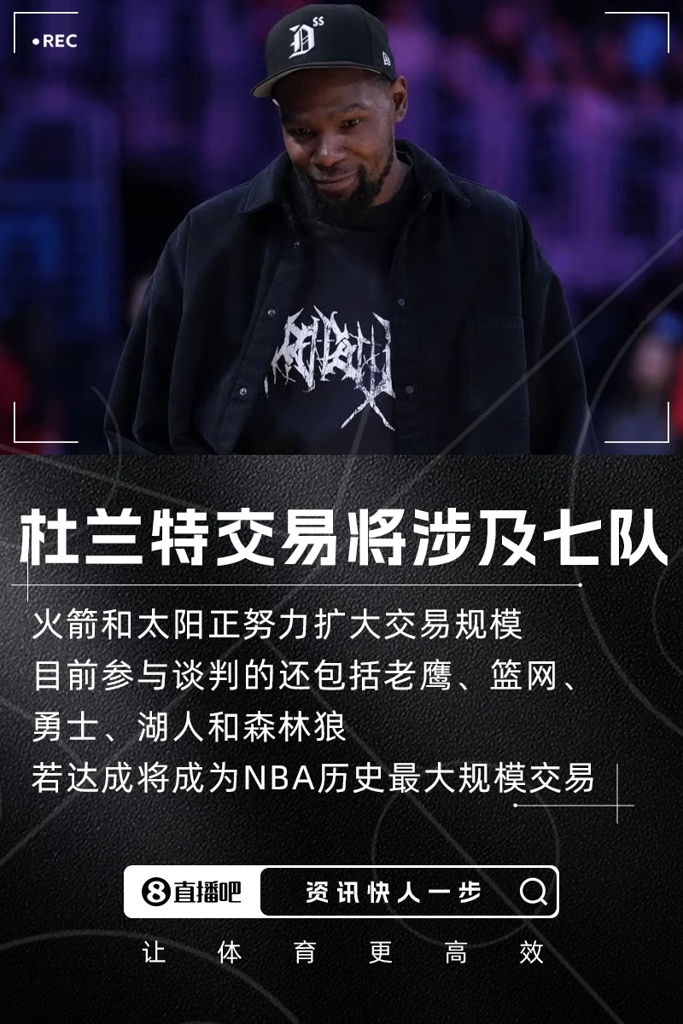 07月03日讯 据TA记者Fred Katz报道,杜兰特交易目前还未正式达成,消息人士透露,火箭和太阳正努力将杜兰特的交易扩大到创NBA纪录的七队大交易。