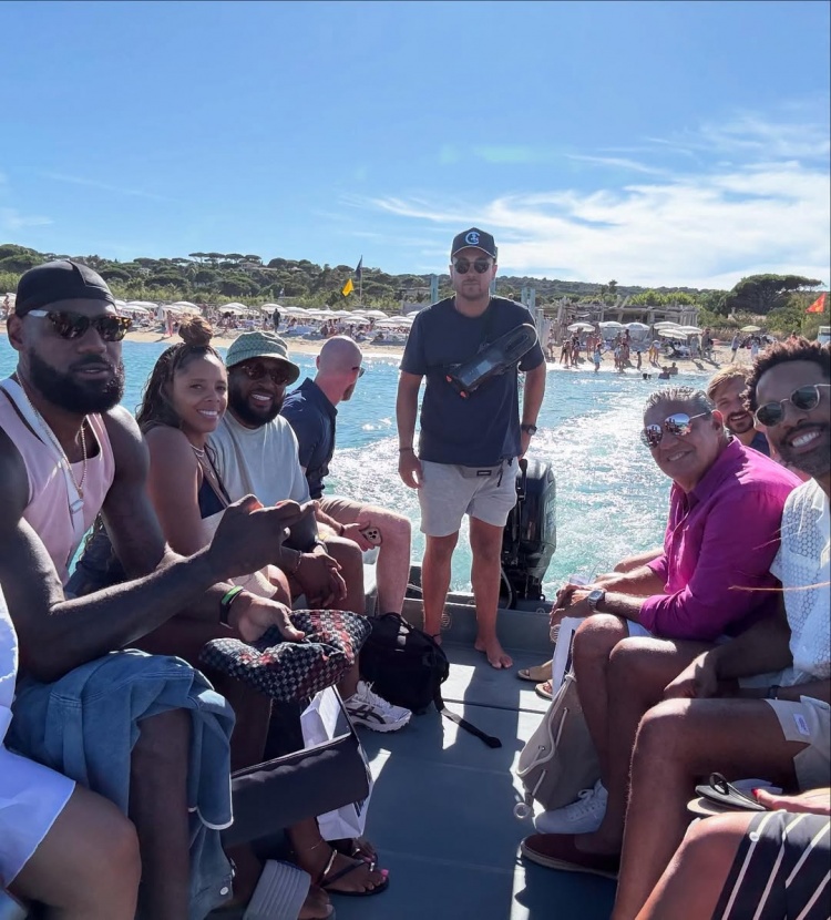 约基奇经纪人晒与詹姆斯在法国南部乘游艇出海度假照