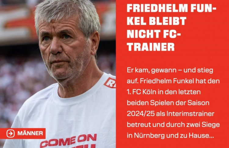 这位71岁的老帅作为临时主帅执教了科隆本赛季的最后两场联赛,并凭借两场胜利让科隆锁定德乙冠军并升级进入德甲。科隆官方宣布,球队将与一位新的主教练一起开始新赛季。