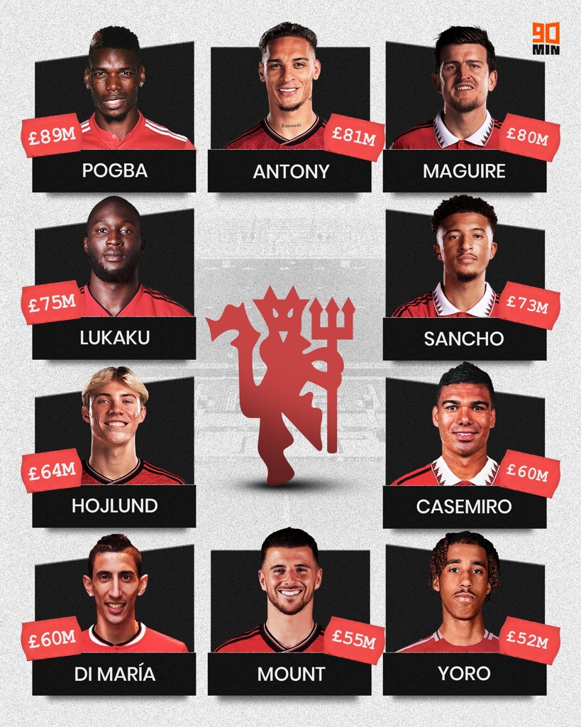 曼联队史引援排行(单位:欧元)